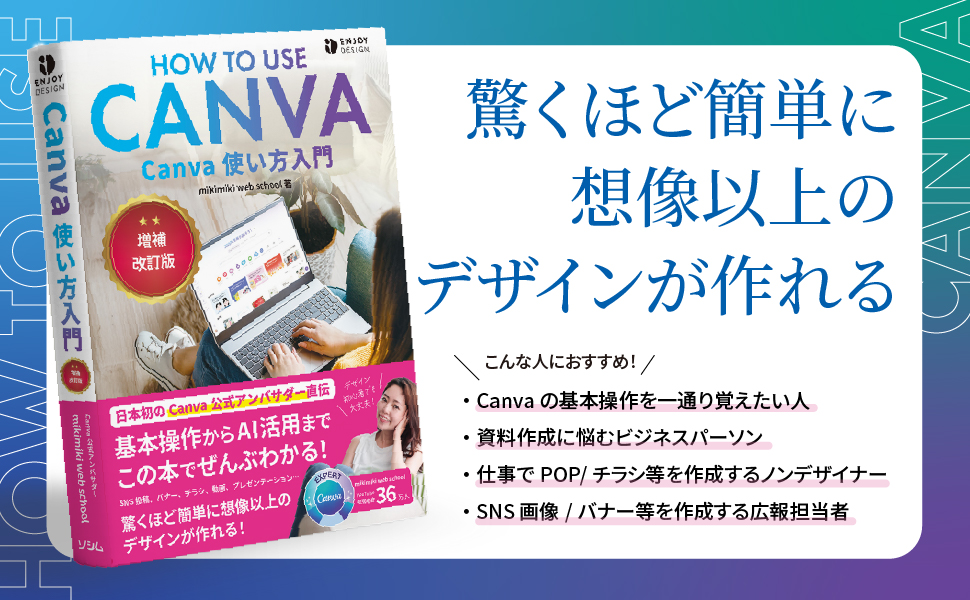 本書の著者はCanva公式アンバサダー(Canva Expert)のmikimiki web school。